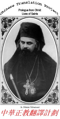 This is a non-profit project to translate the Prologue into Chinese to be freely distributable over the Internet with pastoral blessings of His Eminence, Metropolitan PHILIP of the Antiochian Orthodox Archdiocese of North America through the Order of St Ignatius of Antioch. The source text used is the New English translation of the Serbian Diocese with blessing by His Grace, the Right Reverend JOVAN, Bishop of the Serbian Orthodox Diocese of Western America, to assist in the translation effort. The Chinese translation is being made freely available online for anyone who is interested in helping give feedback on improving the translation or for devotional use for the glory of God. On a technical note, the Chinese translation should not be published alongside the copyrighted English text without the permission of the Serbian Church.The entry with Hymn of Praise, Reflection, Contemplation and Homily is currently available in English for all days and partly in Chinese here: Prologue